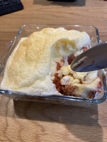 5月7日今日の手抜きごはん 卵白がたまってるので昨日作ってみました。ふわふわ 【スフレドリア】ヘルシオとホットクック使用 ①トマトピューレ200mlと、トマトケチャップ、ひき肉、ソース、塩、にんにくチューブを鍋に入れて手動ー煮物ー2分。 ②ごはんの上に①…
