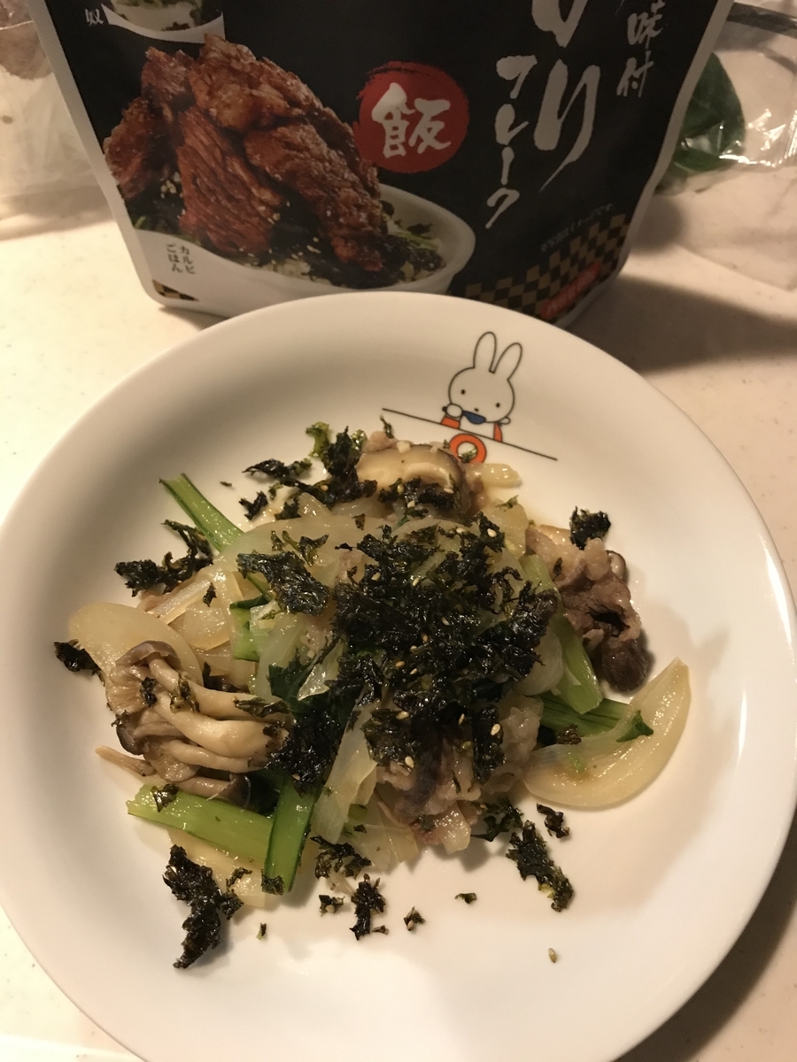 2020-01-28 ホットクックで作る夕ごはん49牛肉の炒めもの 1月28日今日の手抜きごはん 【牛肉の炒め物】新型ホットクック1.6使用 ①鍋にたまねぎと小松菜、シイタケと牛肉を投入。 ②塩コショウをかけ、焼肉のたれをかけて手動ー炒めるー4分スイッチオン 終了 最後に、冒頭の写真のように牛角のふりかけをかけました。韓国のりを細かくした感じ。ごま油と塩加減がいい感じ。いつもの炒め物がちょっと目新しくなりました。 リンク リンク